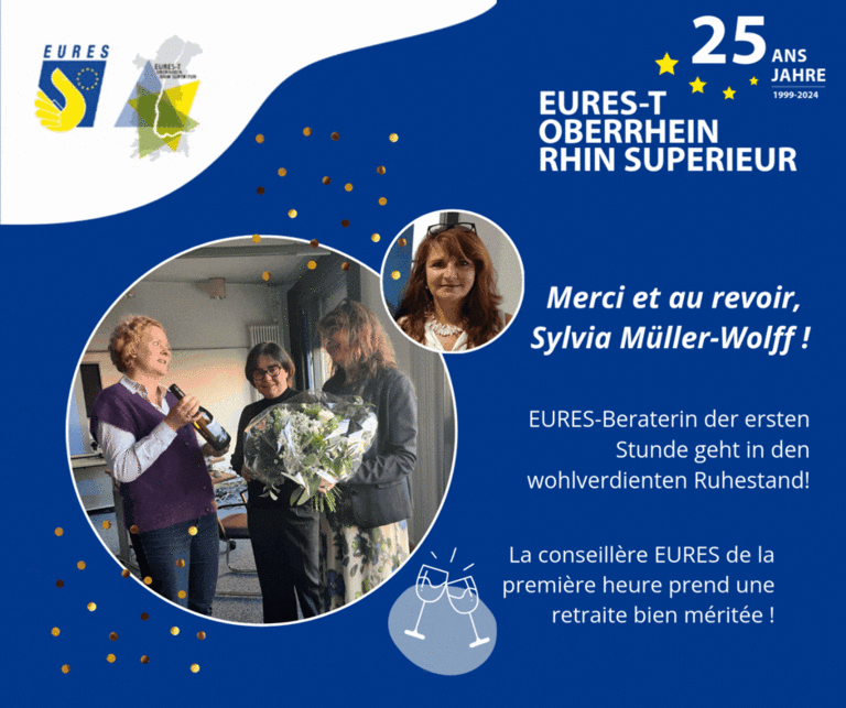 Nous remercions Sylvia pour son engagement sans faille et son dévouement en faveur du partenariat transfrontalier et de la promotion de la mobilité professionnelle dans notre région. En tant que conseillère EURES de la première heure, elle a largement contribué à façonner notre réseau EURES-T Rhin Supérieur et a fait de l'idée théorique de l'UE une réalité vécue par les travailleurs et les employeurs de notre région frontalière.